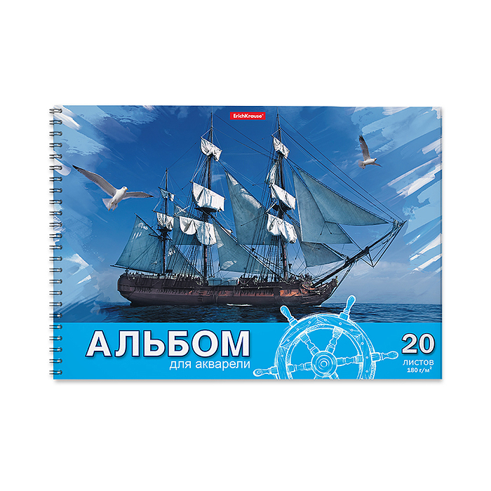 Альбом для рисования 20л. с бумагой для акварели 180 г на спирали Морская прогулка, А4