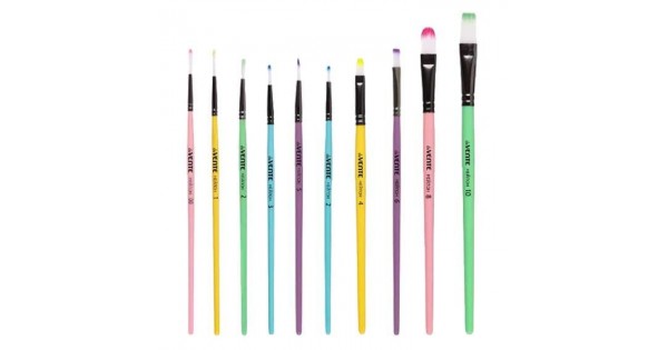 Набор кистей "Pastel" 10 шт (синтет. кругл.№ 00, 1, 2, 3, 5,плоские № 2, 6, 10, плоск.овальн.№ 4, 8)