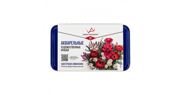 Краска акварель 12цв. художественная "Цветочная симфония" в металлической коробочке, палитра Марии Барановской