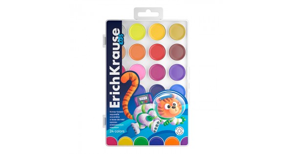 Краски акварельные "Kids Space Animals" медовые с УФ защитой яркости 24 цвета (в пластиковой коробке с европодвесом)