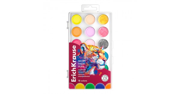 Краски акварельные "Safari Neon+Pastel+Pearl" с УФ защитой яркости 18 цветов (в пластиковой коробке с европодвесом)