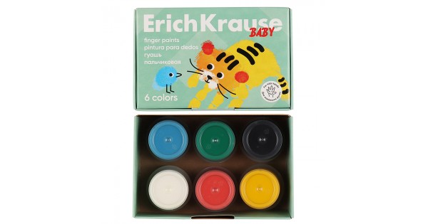 Гуашь пальчиковая "Baby" с Алоэ Вера, 6 цветов по 20 мл (в коробке 6 шт)