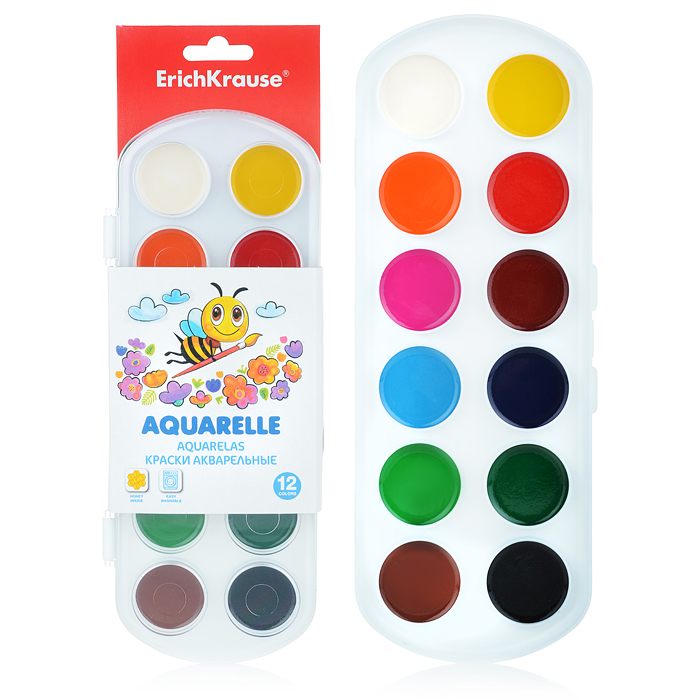Краски акварельные "Magic pet" 12 цветов (в пластиковой коробке с европодвесом)