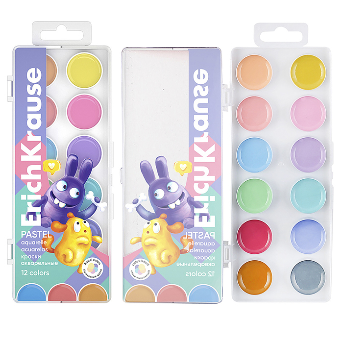 Краски акварельные "Jolly Friends Pastel" 12 цветов (в пластиковой коробке с европодвесом)