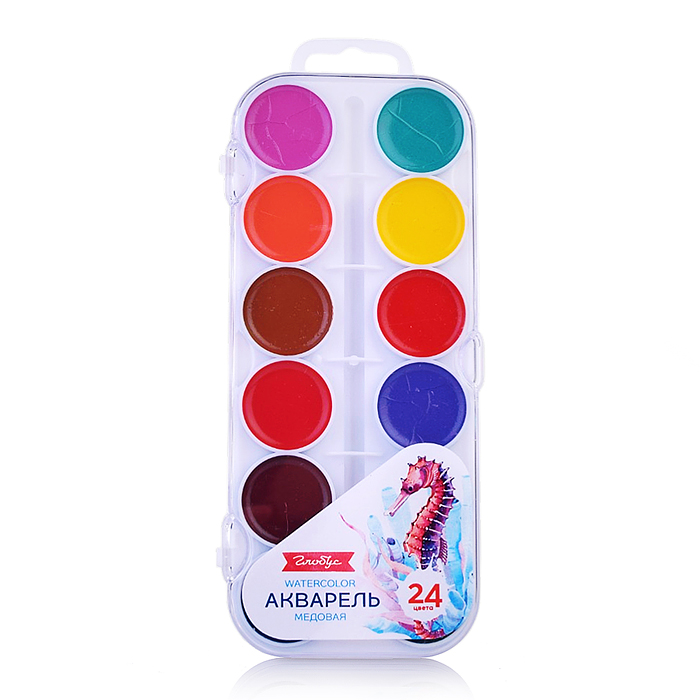 Краски акварельные медовые 24 цвета, пластик. упаковка, европодвес