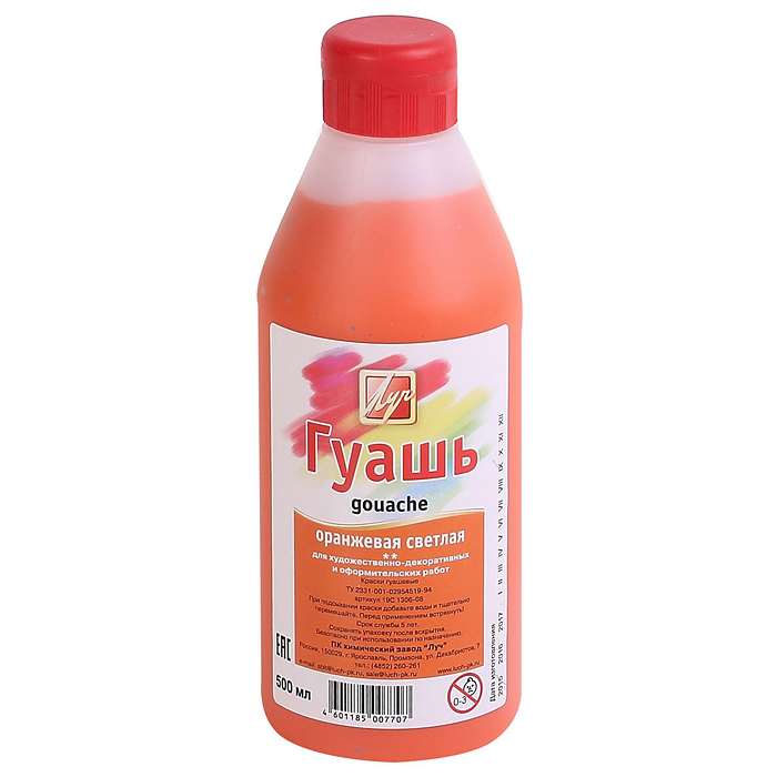 Гуашь художественная "Классика", 500 мл, оранжевая светлая, пластиковая бутылка, дозатор