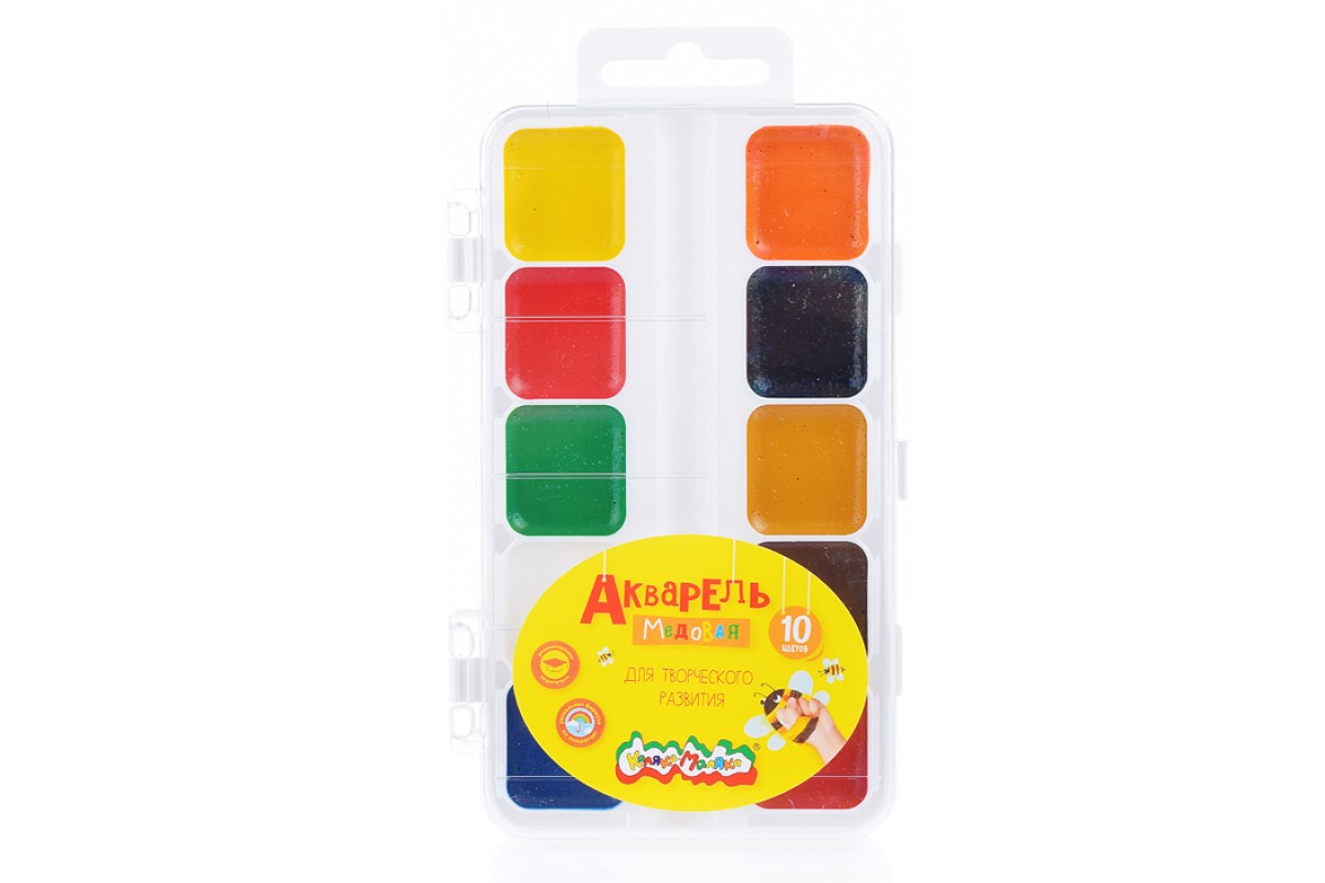 Акварель 10 цв. квадратный кювет. без кисти, пластиковая упаковка