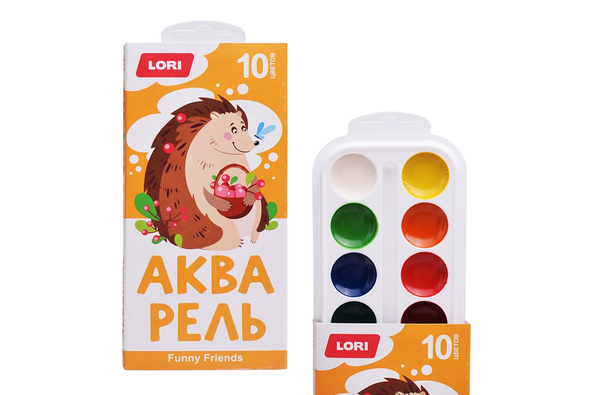 Акварель 10 цветов, Funny Friends, б/к