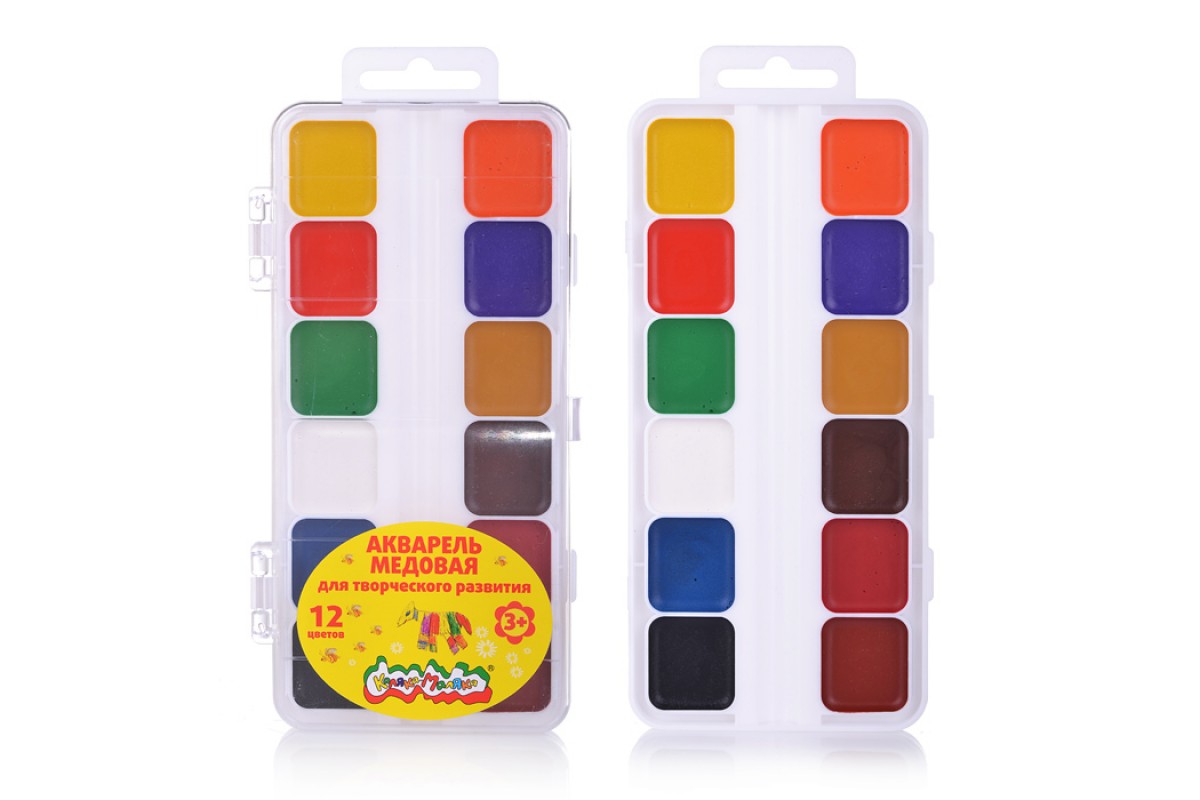 Акварель 12 цв. квадратный кювет, без кисти, пластиковая упаковка