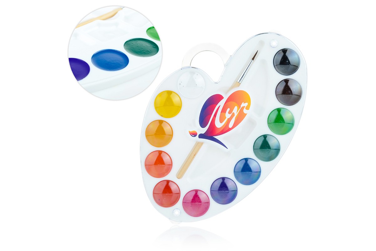 - Краски акварельные медовые с палитрой - 12 цветов.