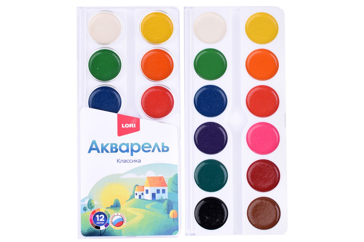 Акварель 12 цветов, Классика б/к в пластиковой упаковке с крышкой