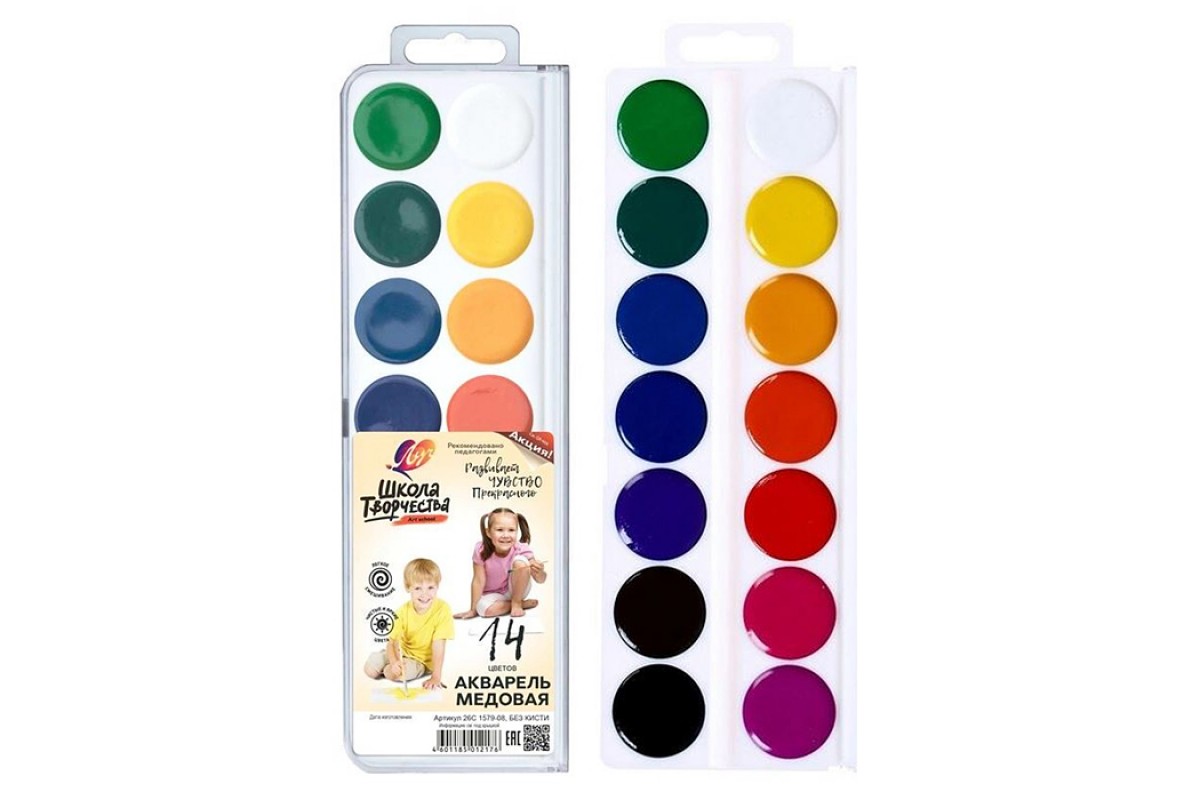 Акварель 14 цветов без кисти "Школа творчества"