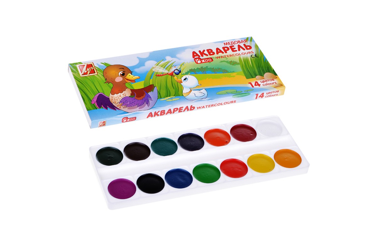 Акварель 14цв. "ZOO" б/кисти карт. упаковка