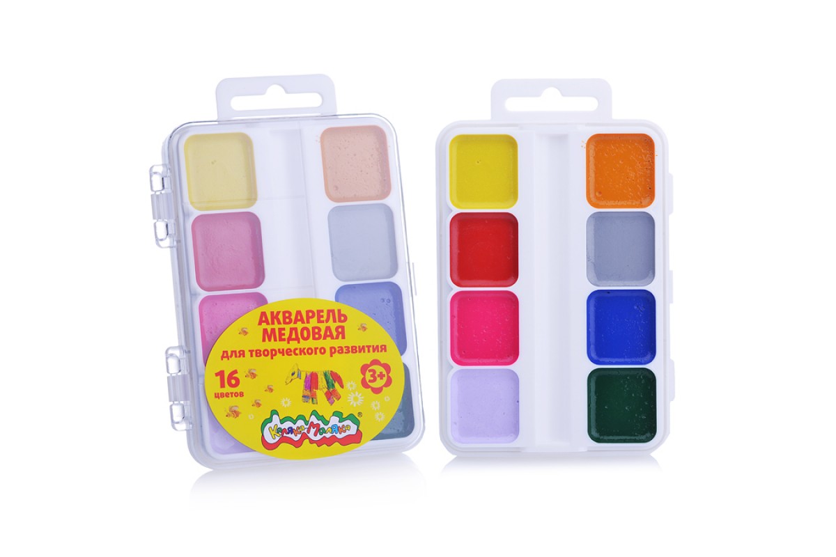 Акварель 16цв., цветов, квадратный кювет, пластиковая упаковка без кисти