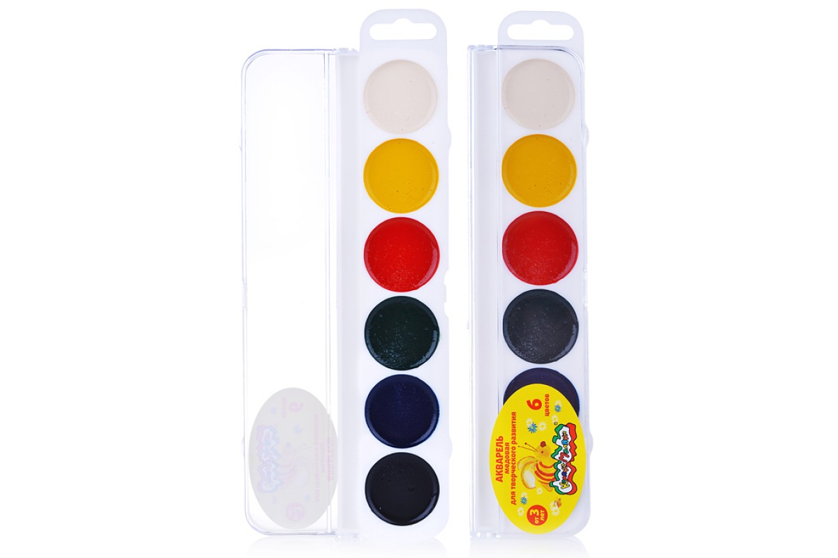 Акварель 6 цв. круглый кювет. без кисти, пласт.уп. европодвес