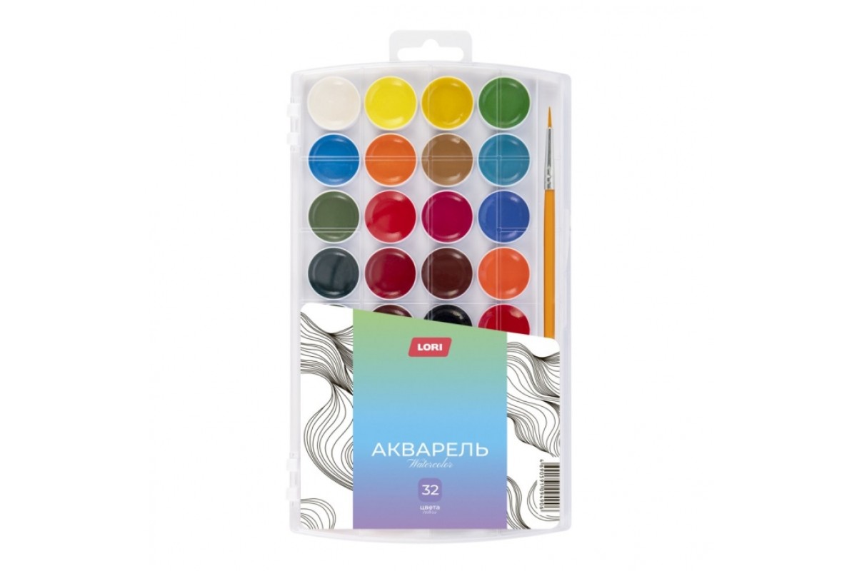 Акварель "Классика" в пластиковом пенале 32 цвета, с/к