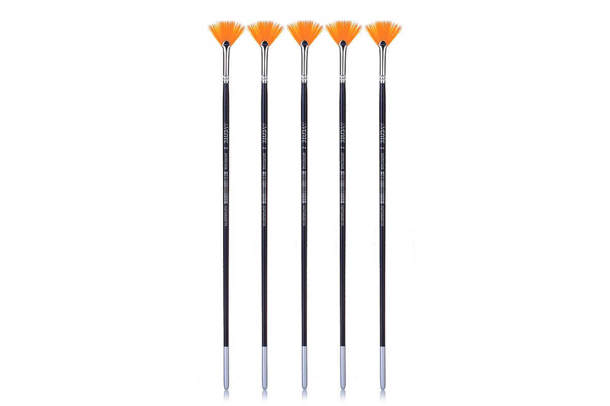 Кисть художественная синтетика № 2 веерная, удлиненная деревянная ручка.