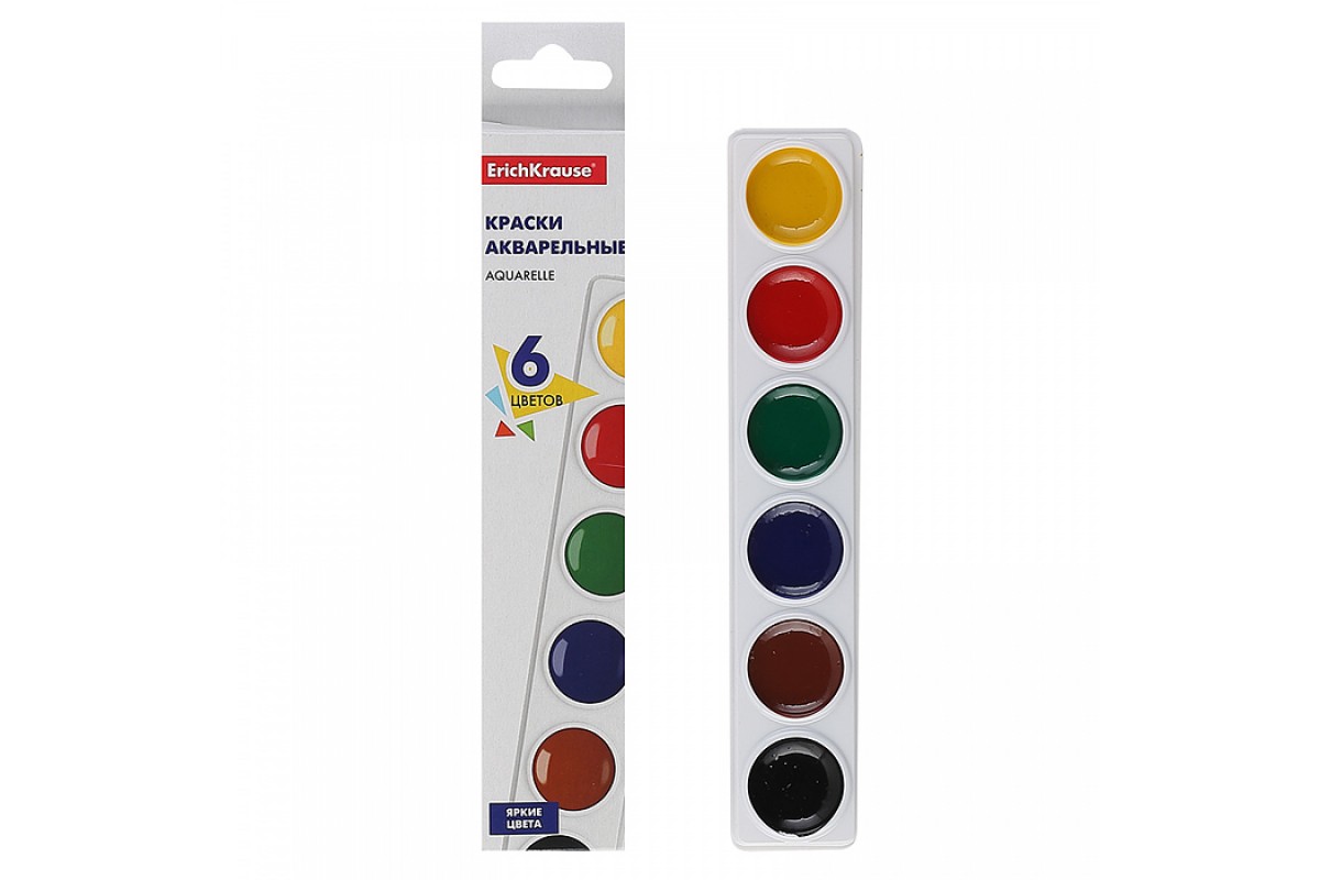 Краски акварельные 6 цветов (в коробке с европодвесом)