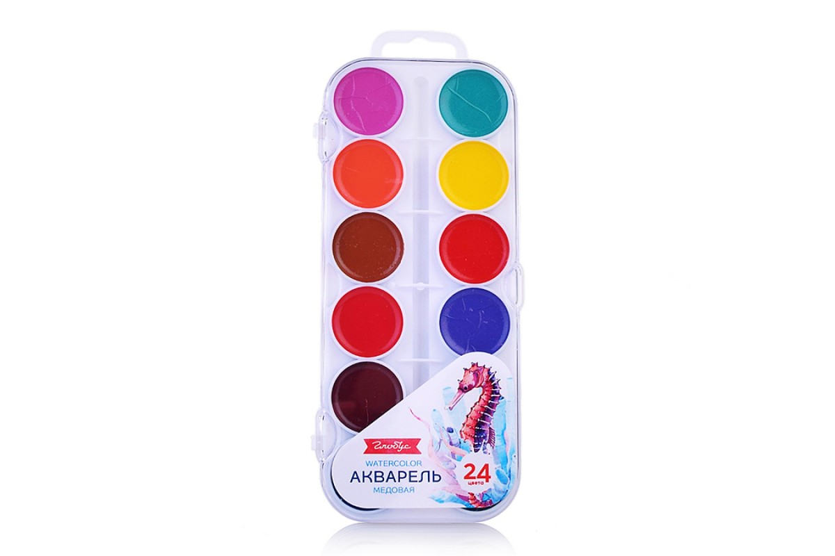 Краски акварельные медовые 24 цвета, пластик. упаковка, европодвес