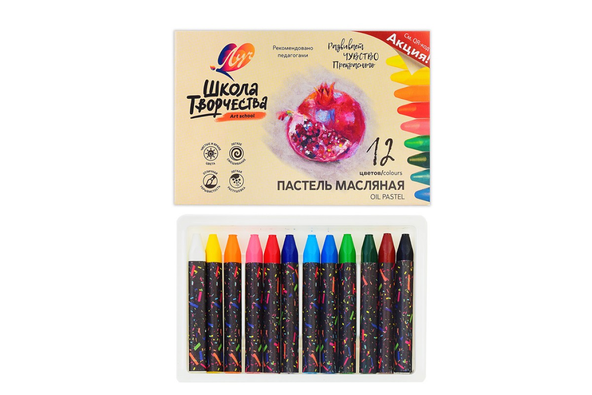 Пастель масляная 12 цв. трехгранная "Школа творчества"