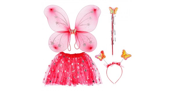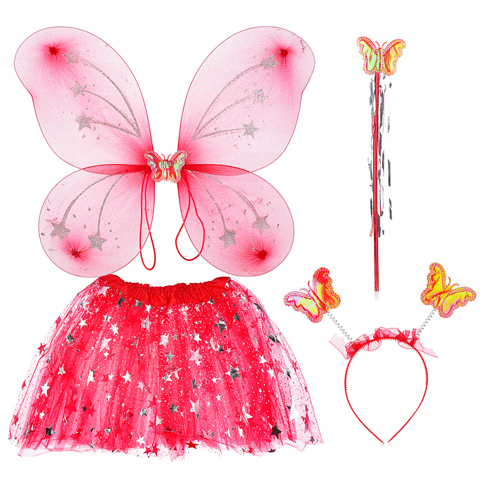 Набор "Крылья карнавальные" Фея (ободок, крылья, палочка, юбка) красный, в пакете