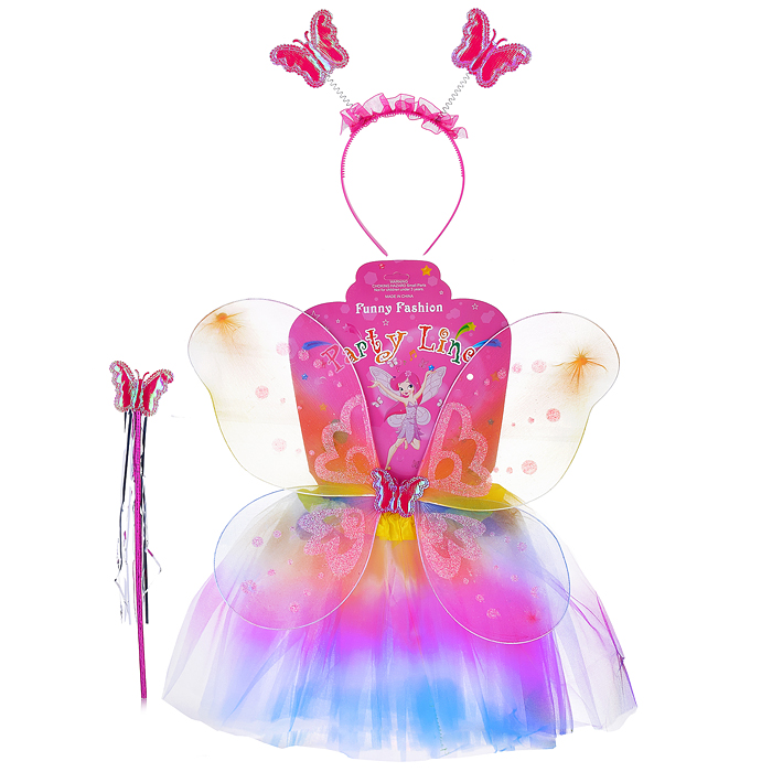 Набор "Крылья карнавальные" Яркая фея (ободок, крылья, палочка, юбка) в пакете