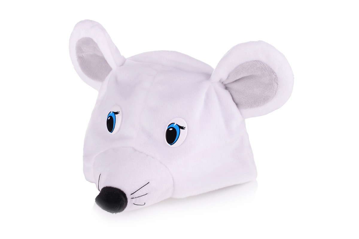 Головной убор швейный "Шапка детская "Мышка/Мышонок белая" р. 52-54