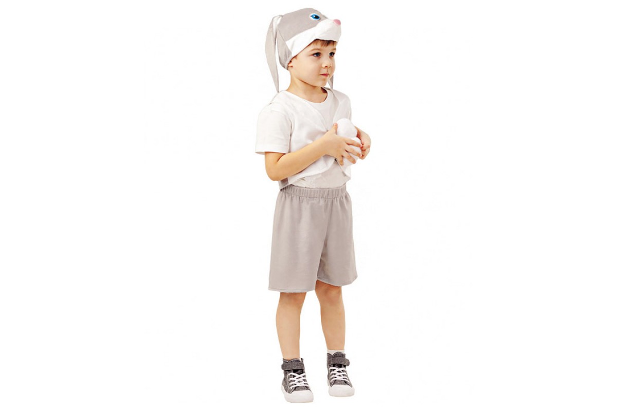 Костюм "Заяц серый Прошка" (жилет, шорты, шапка) размер 128-64