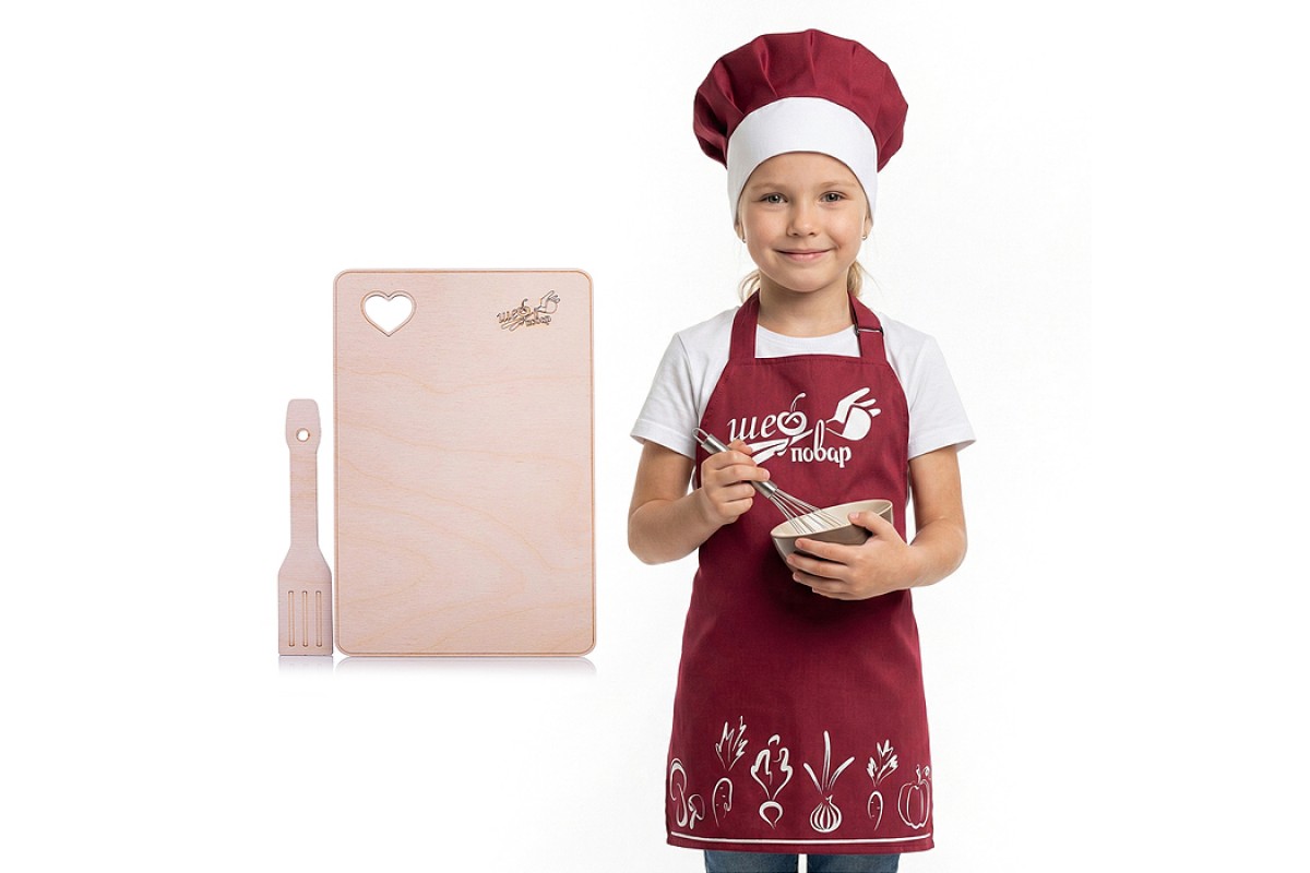 Набор "Шеф-повар" (фартук, колпак, доска, лопатка) бордовый