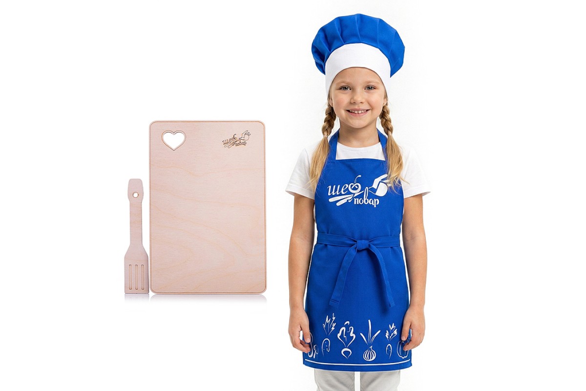 Набор "Шеф-повар" (фартук, колпак, доска, лопатка) синий