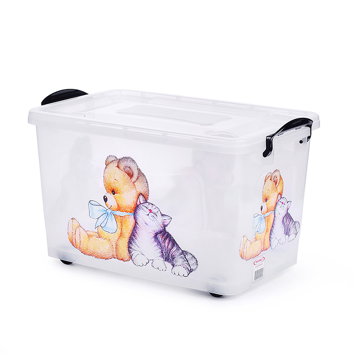 Ящик для игрушек на колесах 66,5л, 685х395х385мм (Светло-голубой)