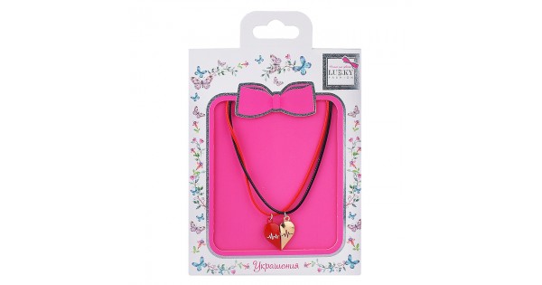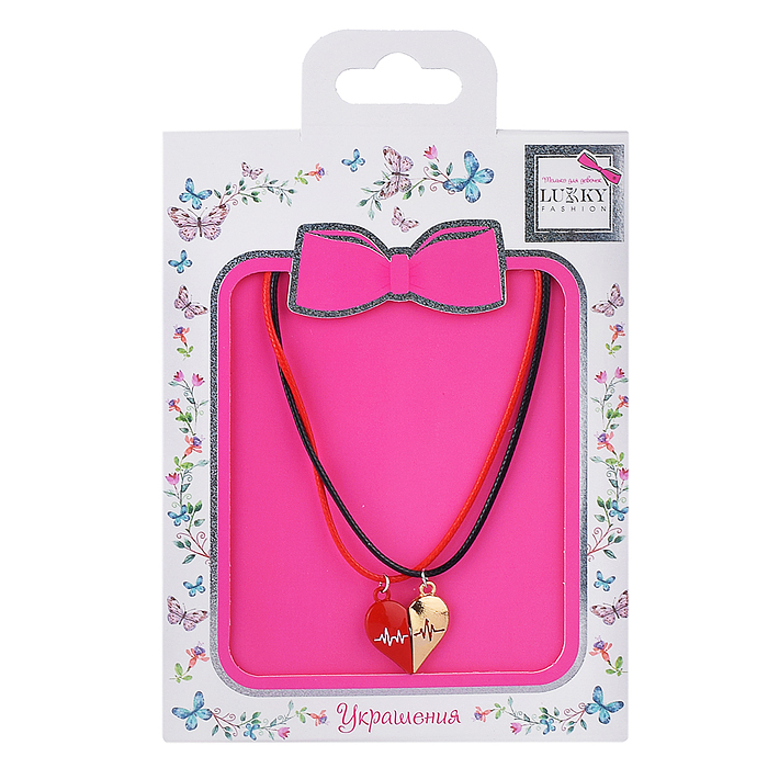 Набор Lukky Fashion из парных цепей-шнурков красно-золот.Сердце пополам на магнит.креплении, конверт