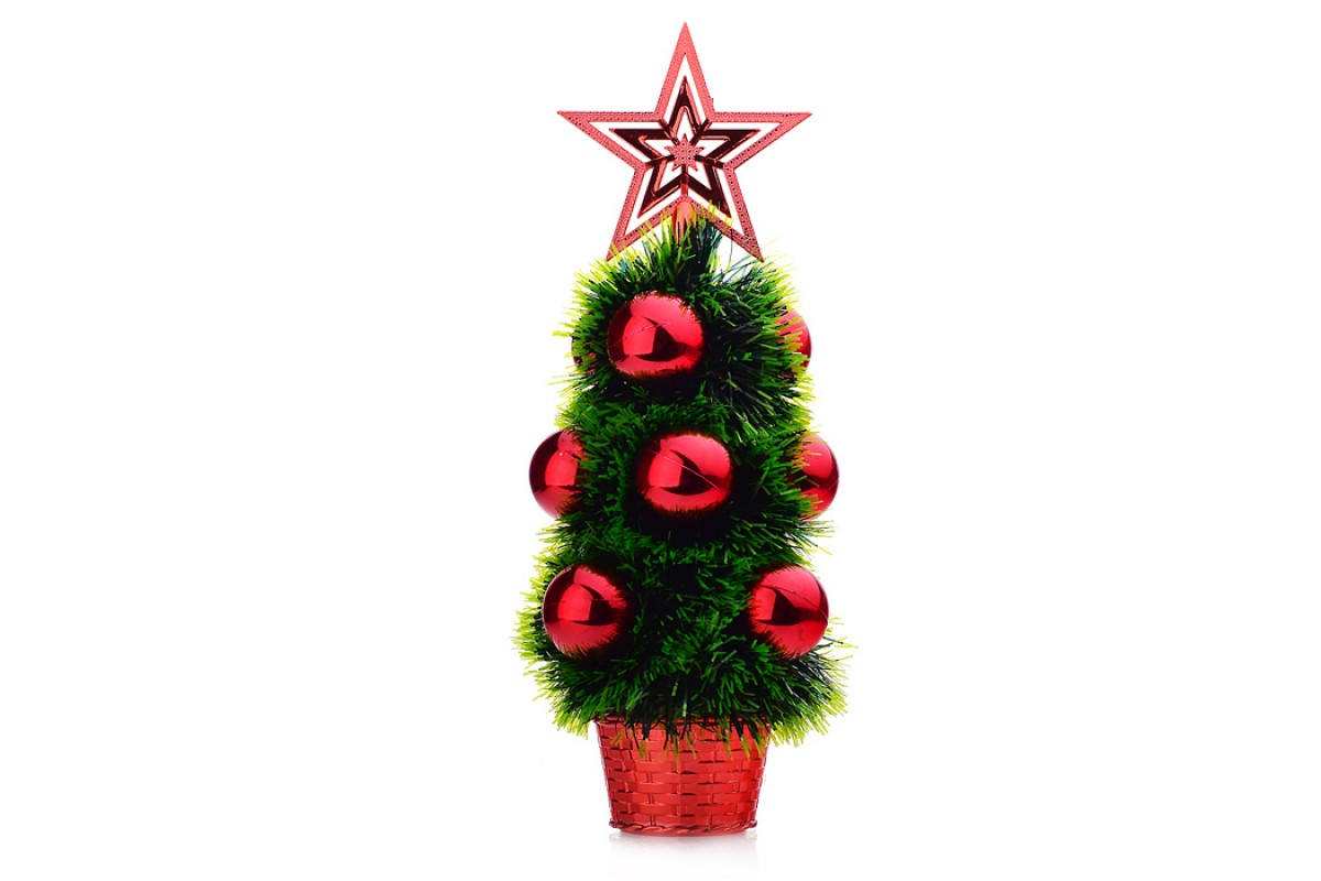 Ель сувенирная (30см) с красными шарами, в пакете