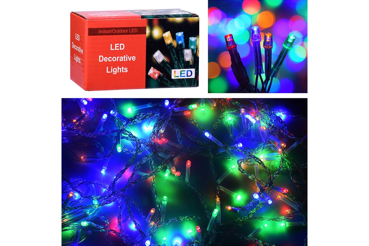 Электрогирлянда, 10м, 100 ламп, цветная