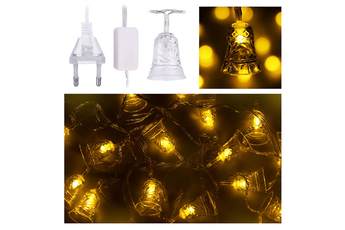 Электрогирлянда "Колокольчики" 4м, 20 ламп, цвет: жёлтый