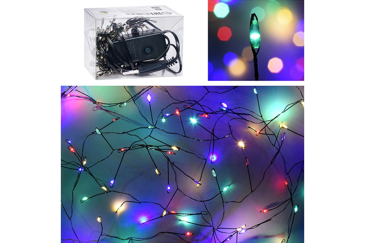 Электрогирлянда Мишура, 6м, 200 ламп, цветная, зеленый провод