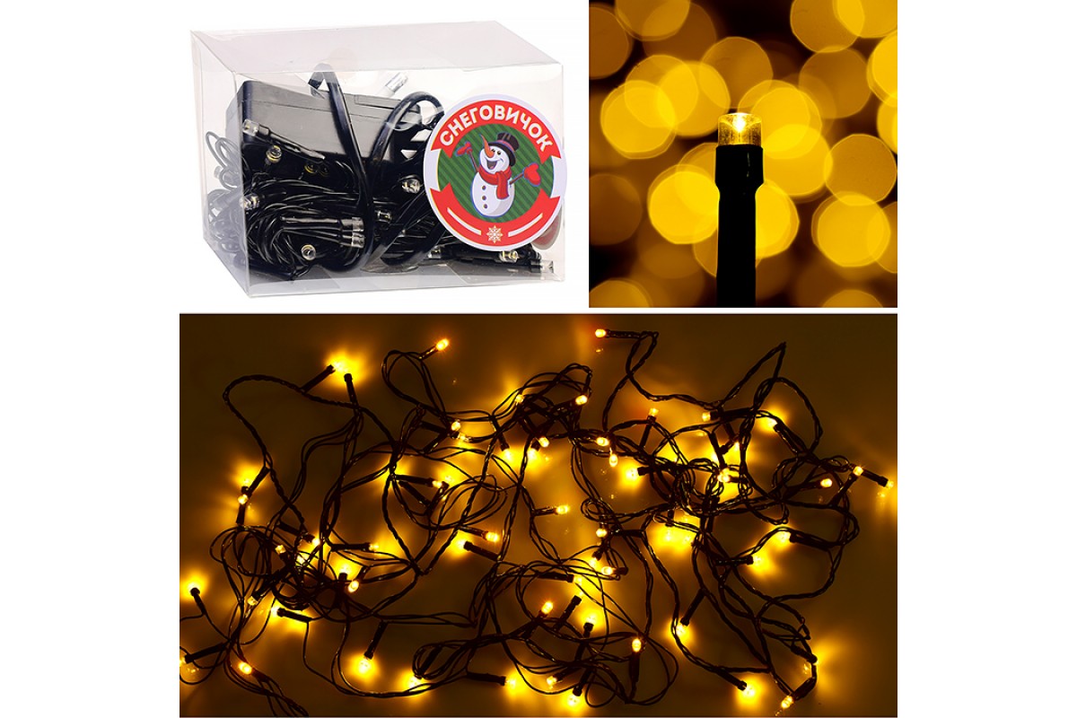 Электрогирлянда светодиодная 5 м, 50 ламп, теплый