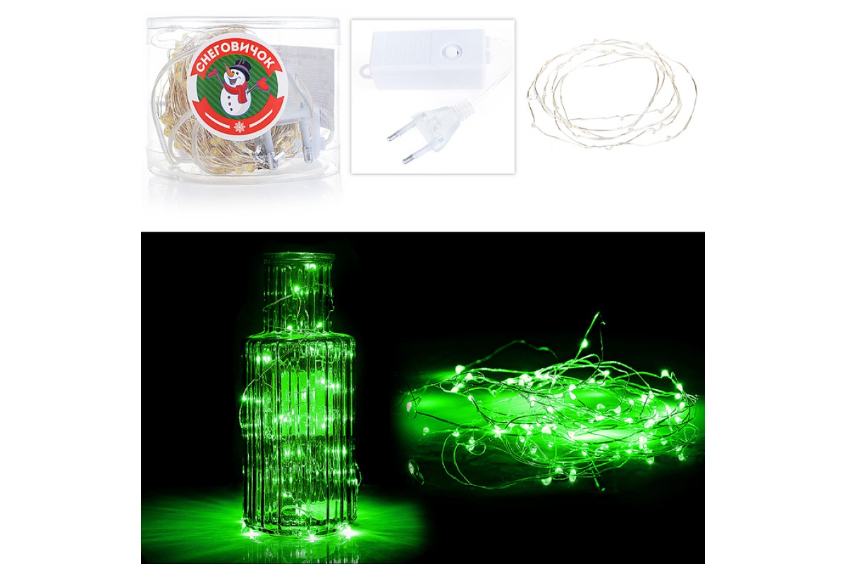 Электрогирлянда светодиодная Роса, 10 м, 100 ламп, зеленый