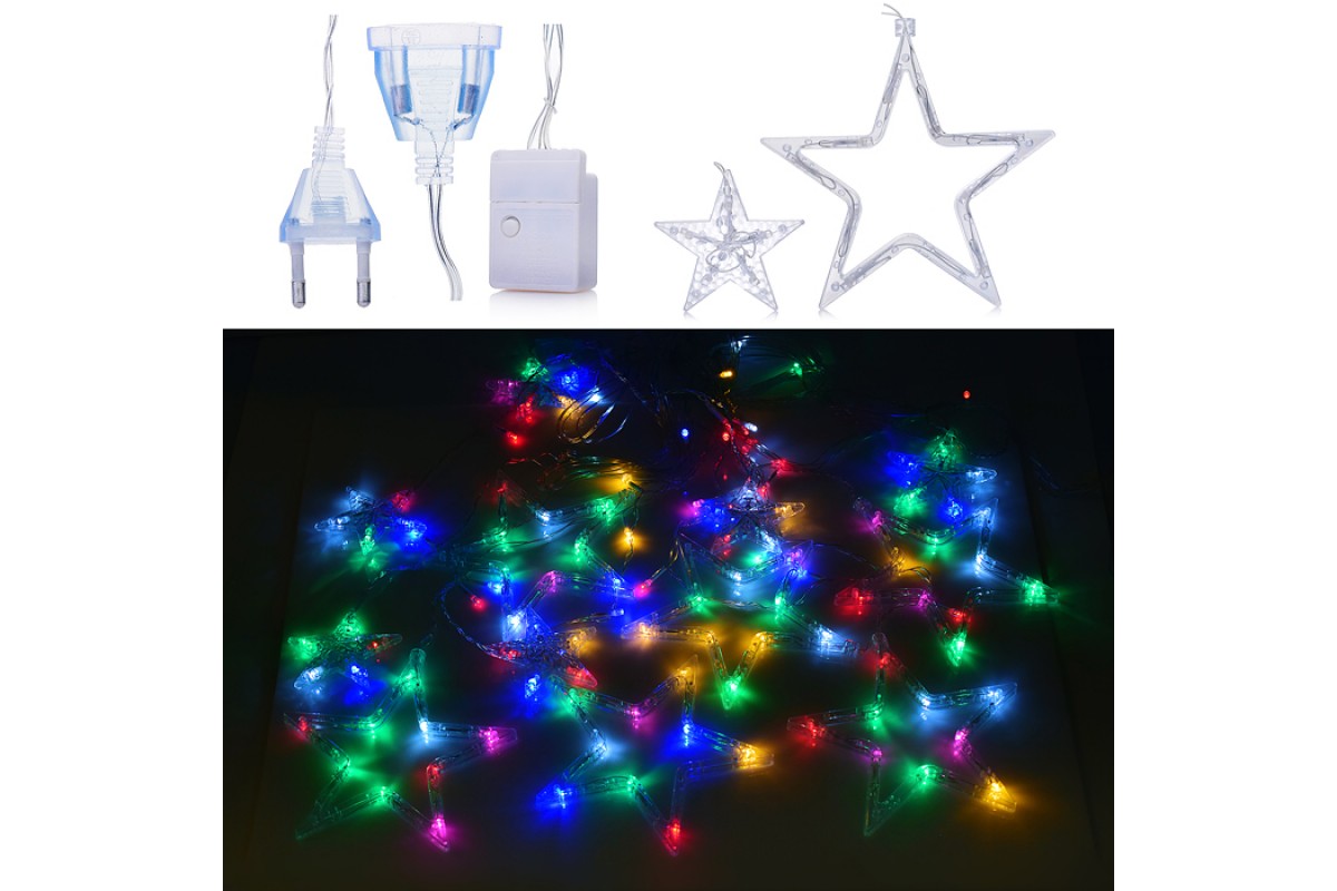 Электрогирлянда-занавес светодиодная "Звездочки", цветная
