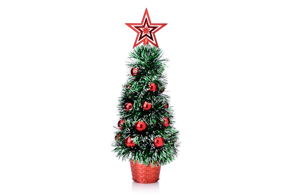Елка сувенирная (40см) с красными шарами и звездой, в пакете