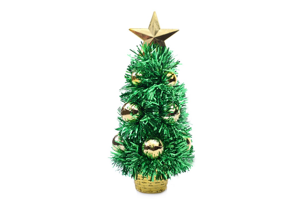Елочка сувенирная зеленая, с золотыми шариками, 20см