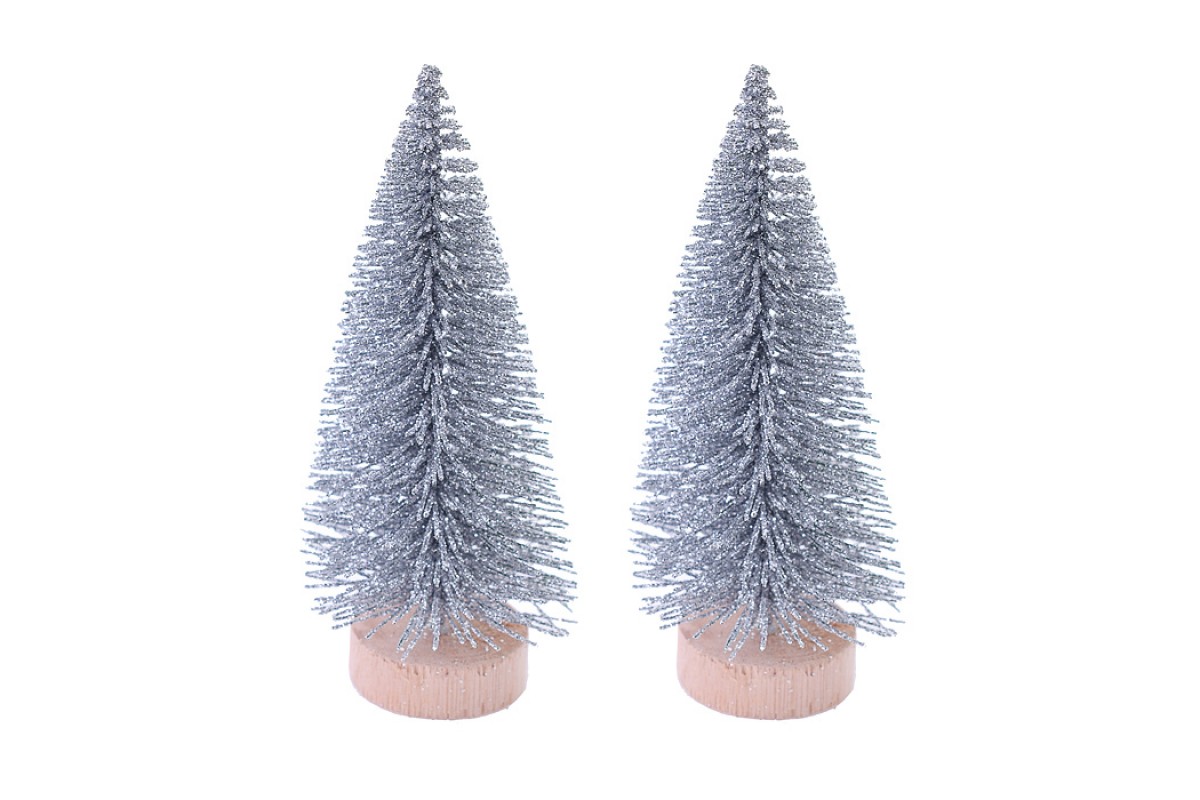 Набор новогодних украшений "Елочка" серебро (10см х 2шт)