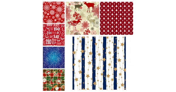 Бумага упаковочная новогодняя "Red&Blue" 70х100 см, 10 дизайнов ассорти, Золотая сказка