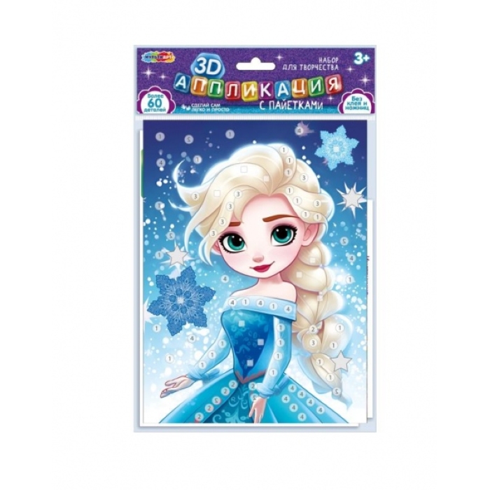 Аппликация 3 в 1 "Снежная принцесса" картон, эва, стразы (в пакете)