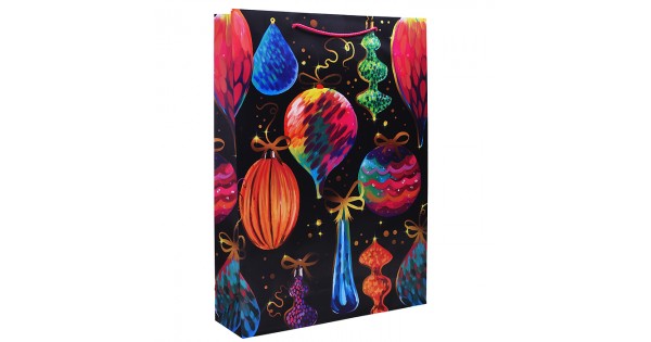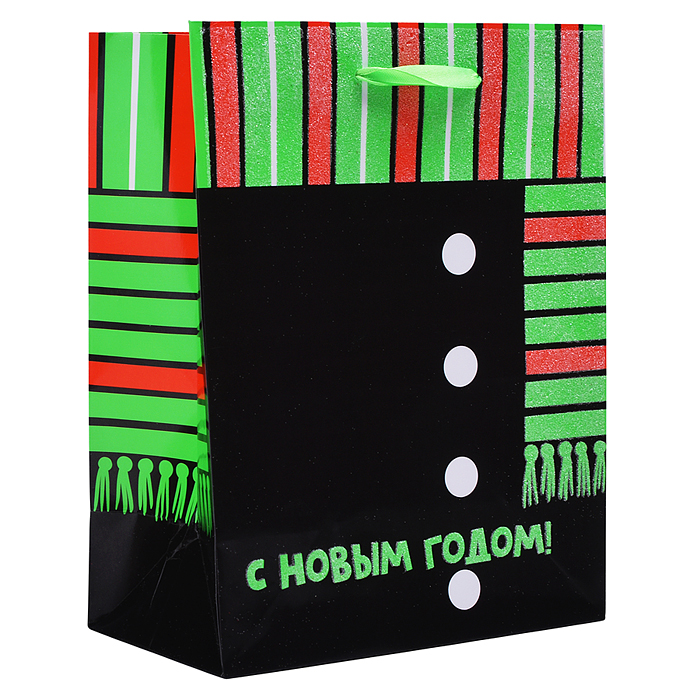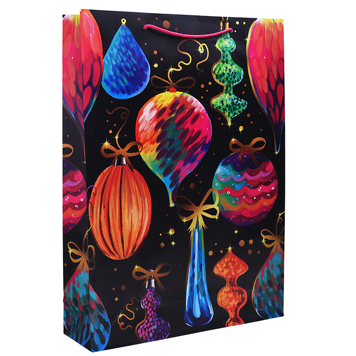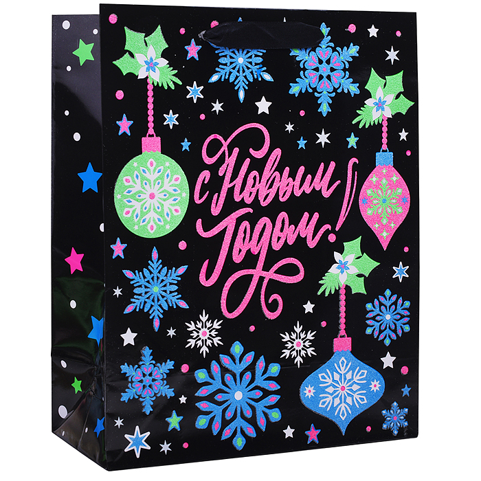 Бумажный пакет для сувенирной продукции, флуоресцентная печать, с шириной основания 26 см.