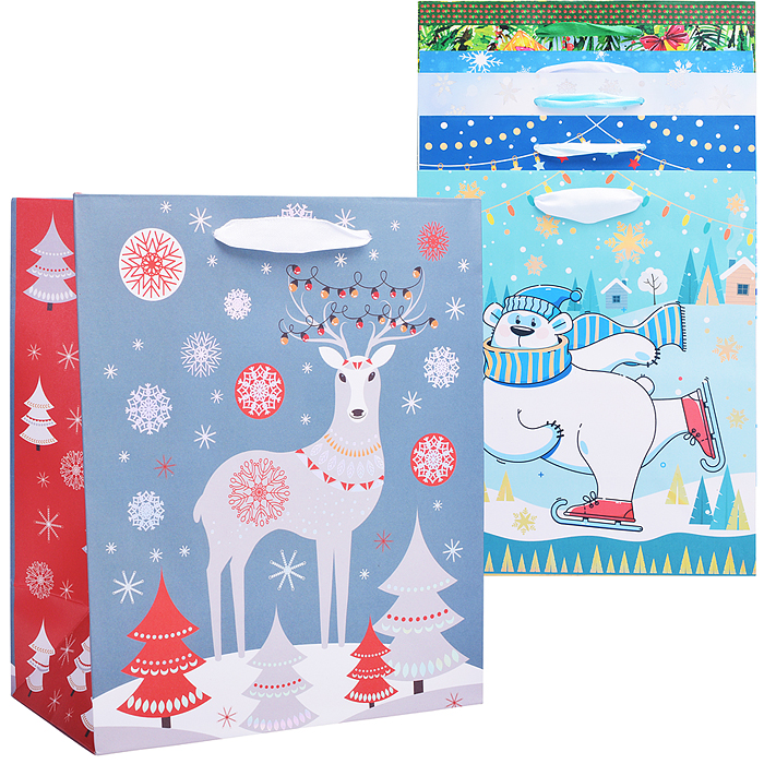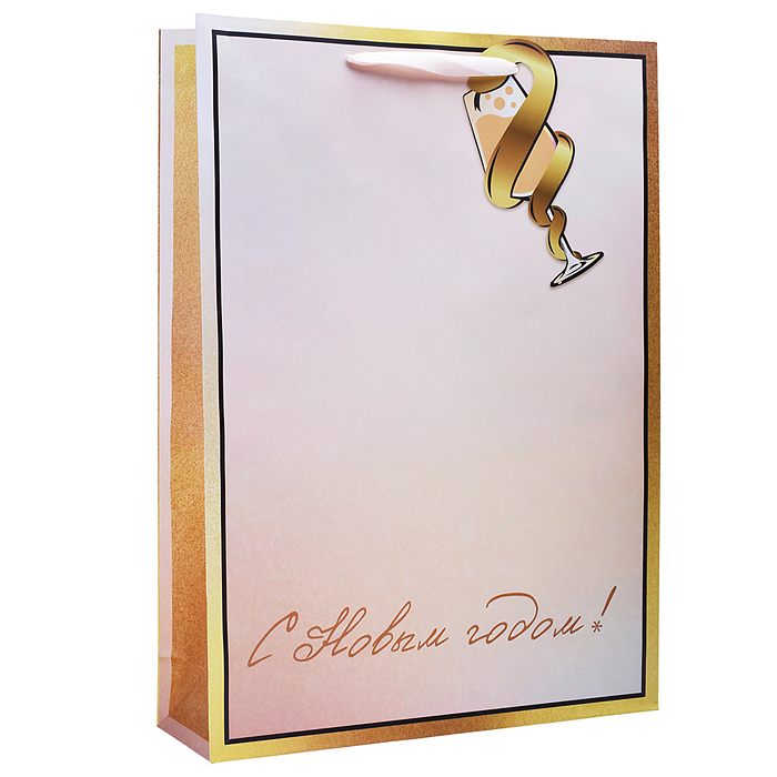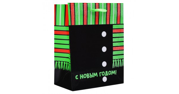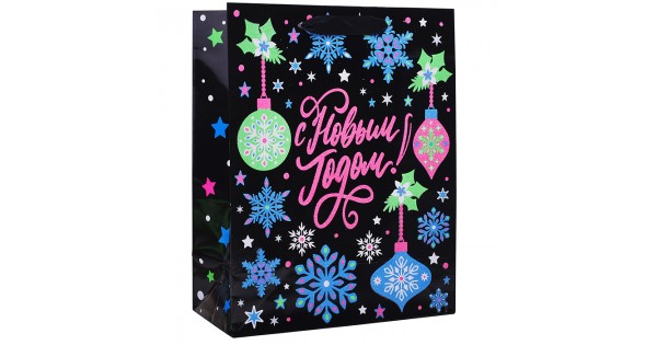 Пакет бумажный подарочный BC НГ, эффект: матовая ламинация, тиснение фольгой, Размер 20x24x11,5 см
