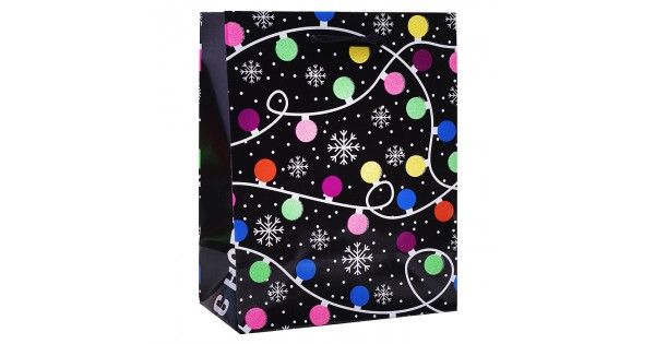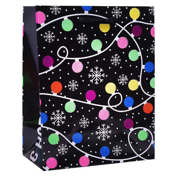 Бумажный пакет для сувенирной продукции, флуоресцентная печать, с шириной основания 17,8 см.