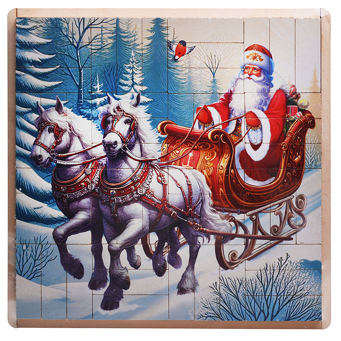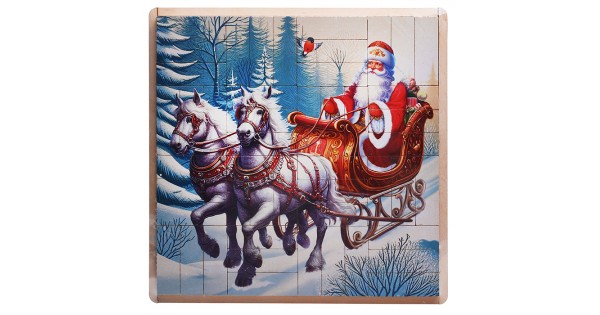 Настольная игра Джанга-пазл "Новогодние лошадки с Дед Морозом" (МДФ)