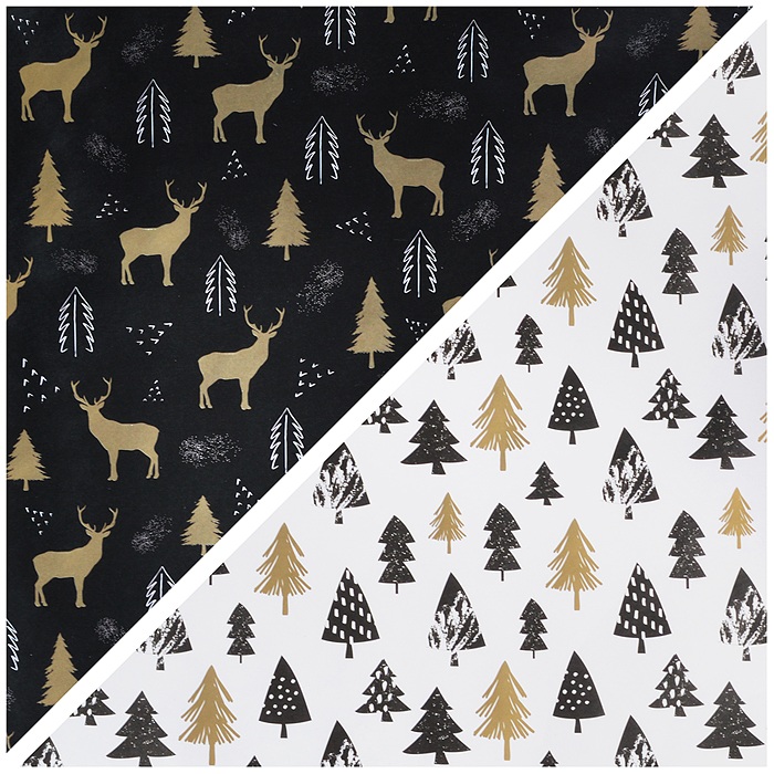 Бумага упаковочная подарочная новогодняя "Black.Gold.White", 70х100 см, 10 дизайнов ассорти, Золотая сказка