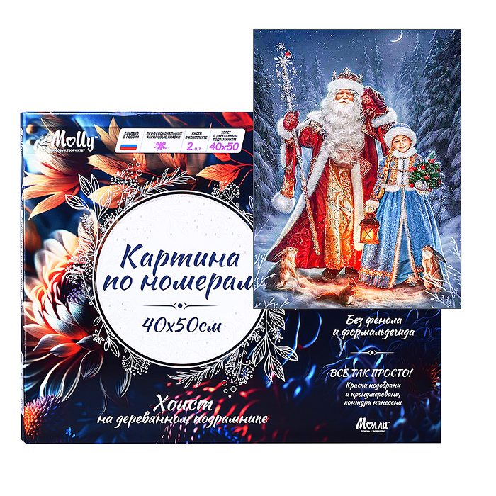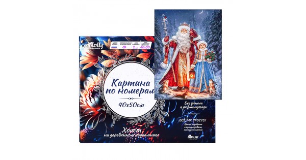 Картина по номерам 40х50 "Дед Мороз и снегурочка" USB LED подсветка (25 цветов)